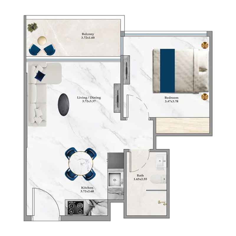 ۱ خوابه65 m²از 1,125,000 AED