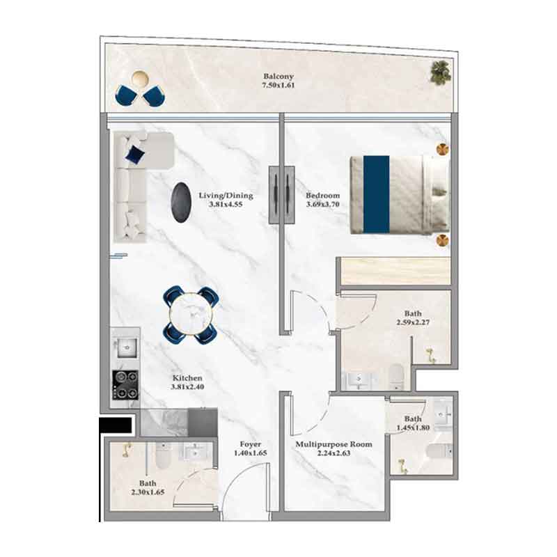 نوع واحدمتراژ (م²)قیمت شروع (AED)
