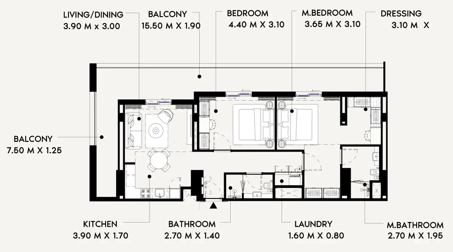 | ۱ خوابه | 55 – 75 m² | از حدود 947,000 AED |