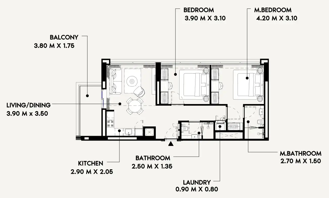 | ۲ خوابه | 85 – 110 m² | از حدود 1,280,000 AED |