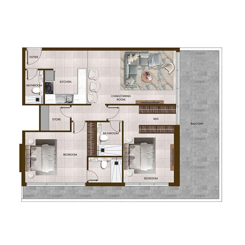 • نوع ملک: آپارتمان (Studio، 1 خوابه، 2 خوابه، 3 خوابه) + Retail (فروشگاه‌ها در طبقه همکف)