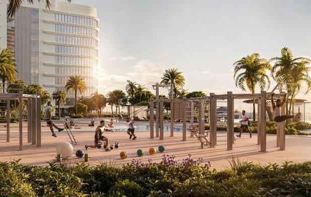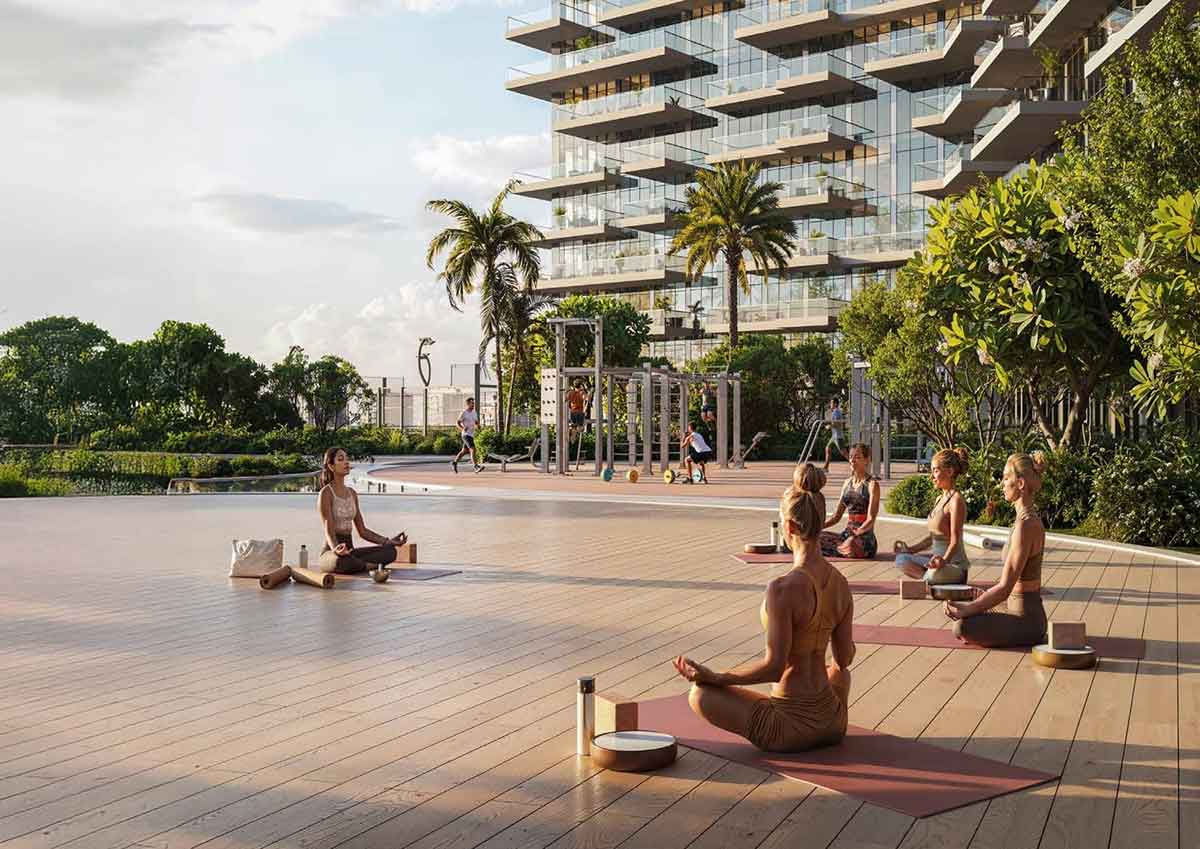 نوع پروژه: جامعهای ترکیبی (Mixed-use) شامل برجهای مسکونی، اداری (office), تجاری (Retail) با طراحی “زندگی، کار و تفریح” در یک مکان ساخته شده است.