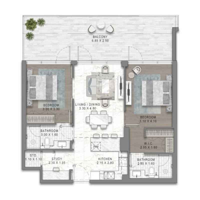 | ۱ خوابه آپارتمان | از ~ AED 1,100,000 | 58.3_96.2 |