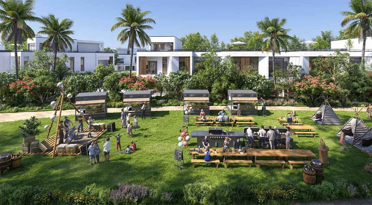 • امکانات تفریحی و رفاهی متنوع: کافه و رستوران‌ها (Portofino و Island)، کلاس آشپزی، فضاهای BBQ، زمین بازی کودک، climbing wall، بازی‌های فکری، کلوپ اجتماعی