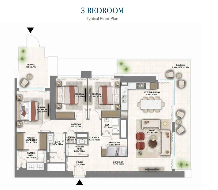| نوع واحد | متراژ (ft²) | متراژ (m²) | قیمت شروع (میلیون AED) |