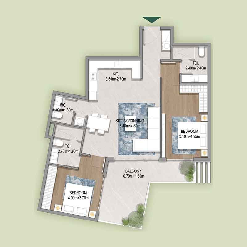 | 3 خوابه | 1,399 – 1,722 ft² | 130 – 160 m² | از 1,700,000 |