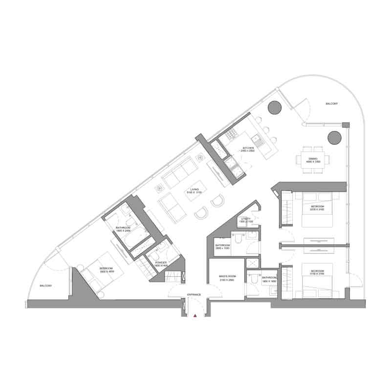 | ۳ خوابه (3 BHK) | ~1,889 ft² | 176 m² | از AED 3,951,492 |