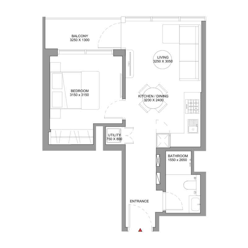 | ۱.۵ خوابه (1.5 BHK) | 700 ft² | ~73 m² | از AED 1,626,226 |