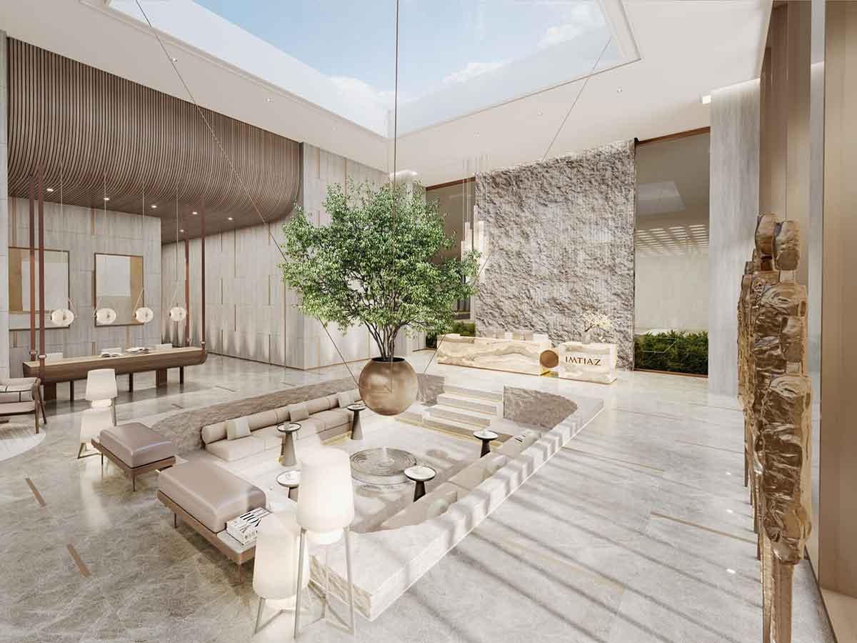 طراحی مدرن و امکانات سبک زندگی (gym, pool, retail).